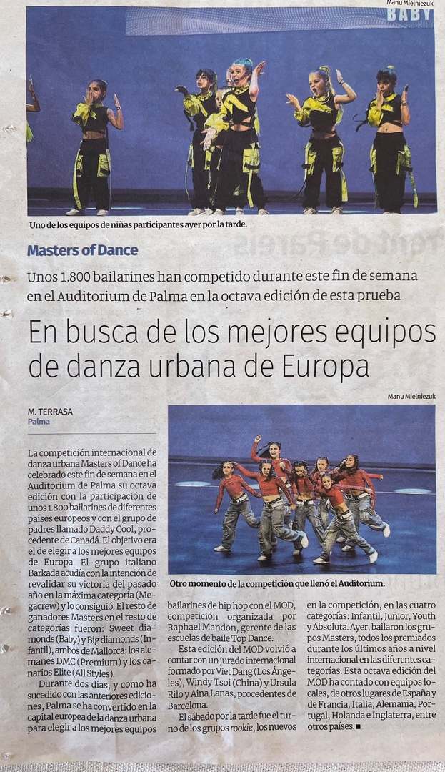 La 6ª edición del MOD Mallorca 2022 en el auditorium de Palma ha sido un gran éxito. Cientos de jovenes de Europa han podido disfrutar de este gran concurso de baile. Agradecer el fantástico labor de nuestros voluntarios para el buen desarollo del evento.
